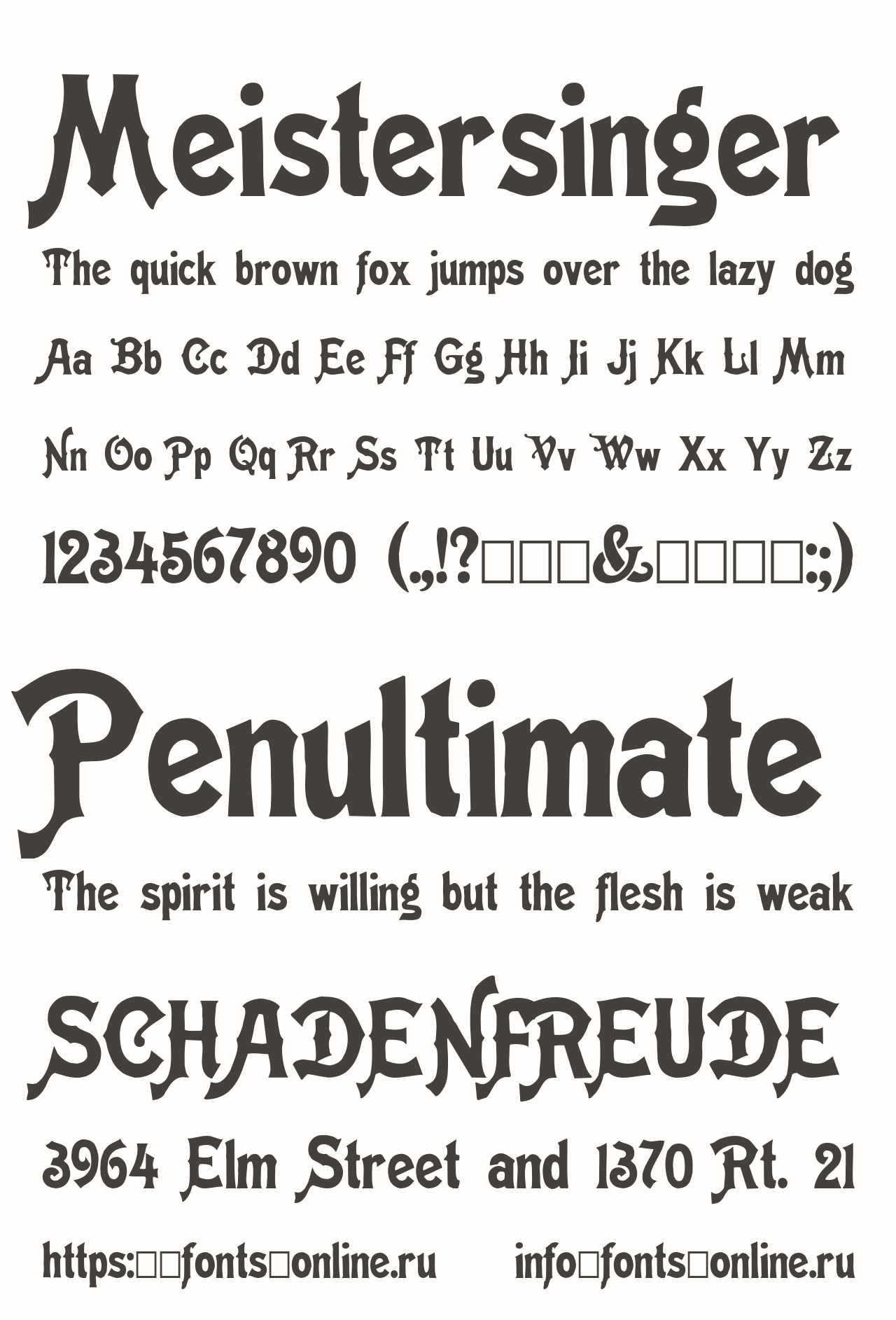 Шрифт Meistersinger. Гарнитура содержит 2 файла и поддерживает 12 языков. Можно использовать в коммерческой и не коммерческой деятельности.