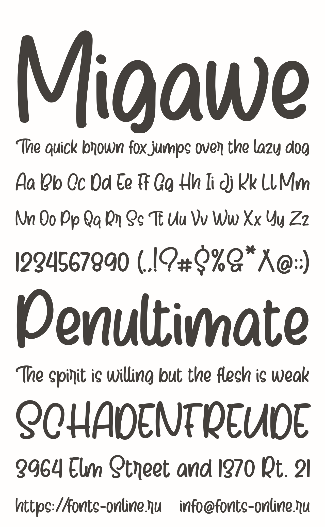 Шрифт Migawe. Гарнитура содержит 2 файла и поддерживает 12 языков. Можно использовать в не коммерческой деятельности. Разработка Migawe велась Vunira Design.