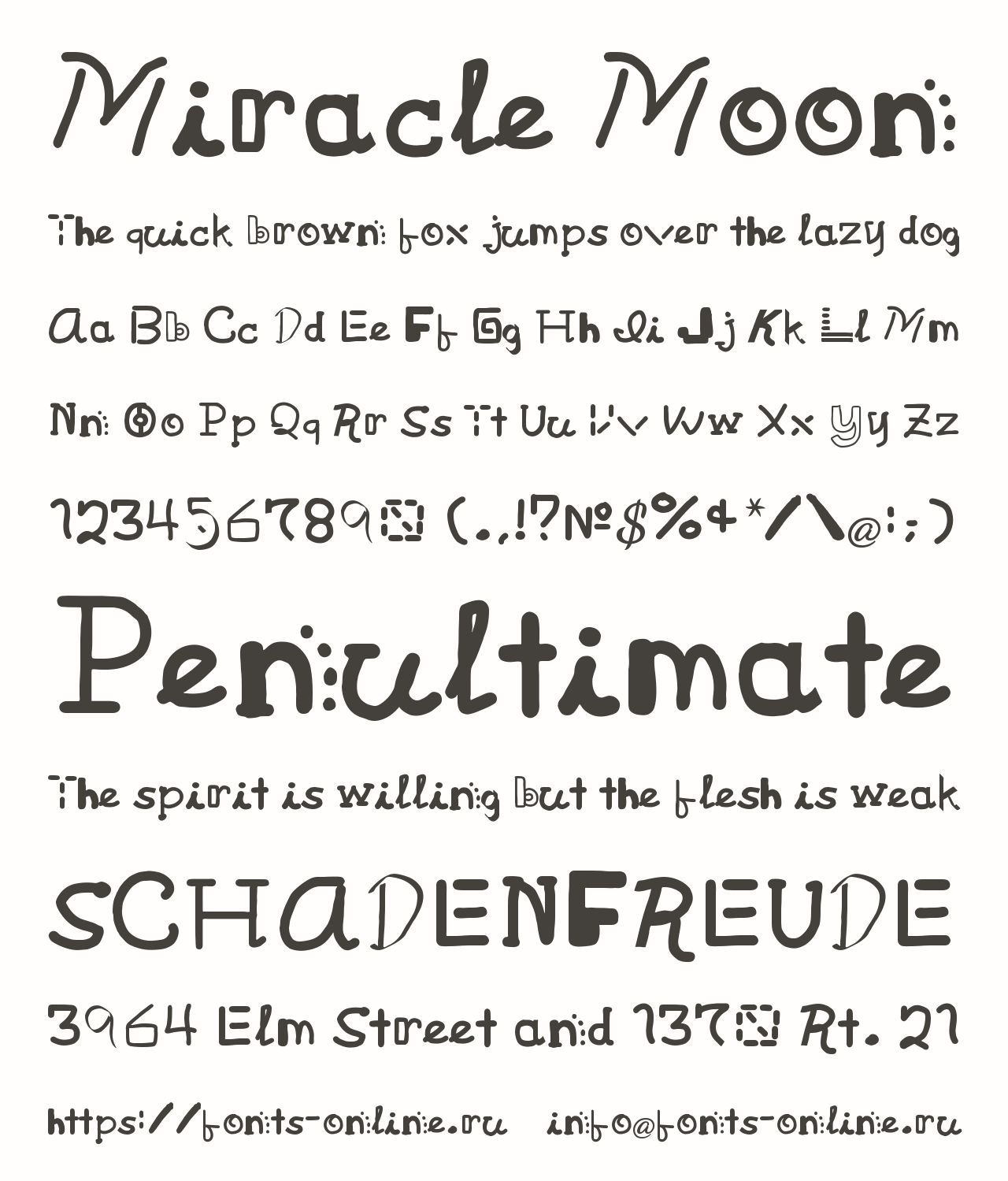 Шрифт Miracle Moon. Гарнитура содержит 1 файл и поддерживает 41 язык. Можно использовать в коммерческой и не коммерческой деятельности.