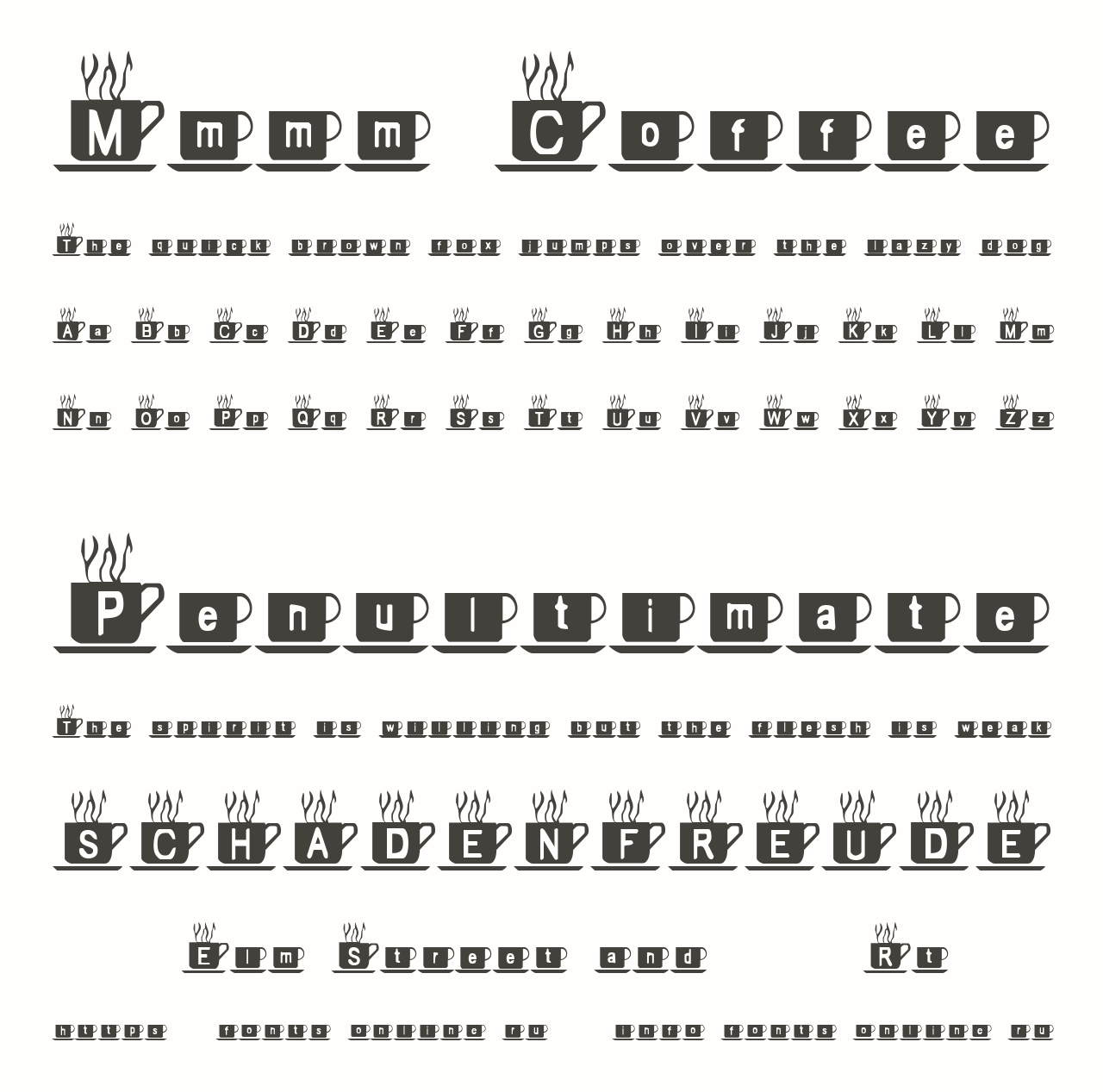 Шрифт Mmmm Coffee. Гарнитура содержит 1 файл и поддерживает 12 языков. Можно использовать в коммерческой и не коммерческой деятельности.