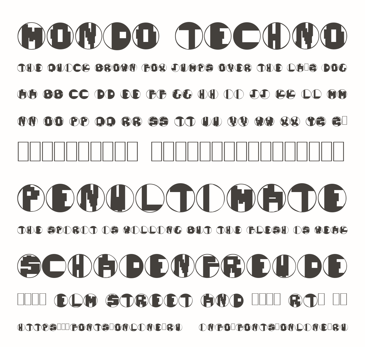 Шрифт Mondo Techno. Гарнитура содержит 1 файл и поддерживает 0 языков. Можно использовать в коммерческой и не коммерческой деятельности.