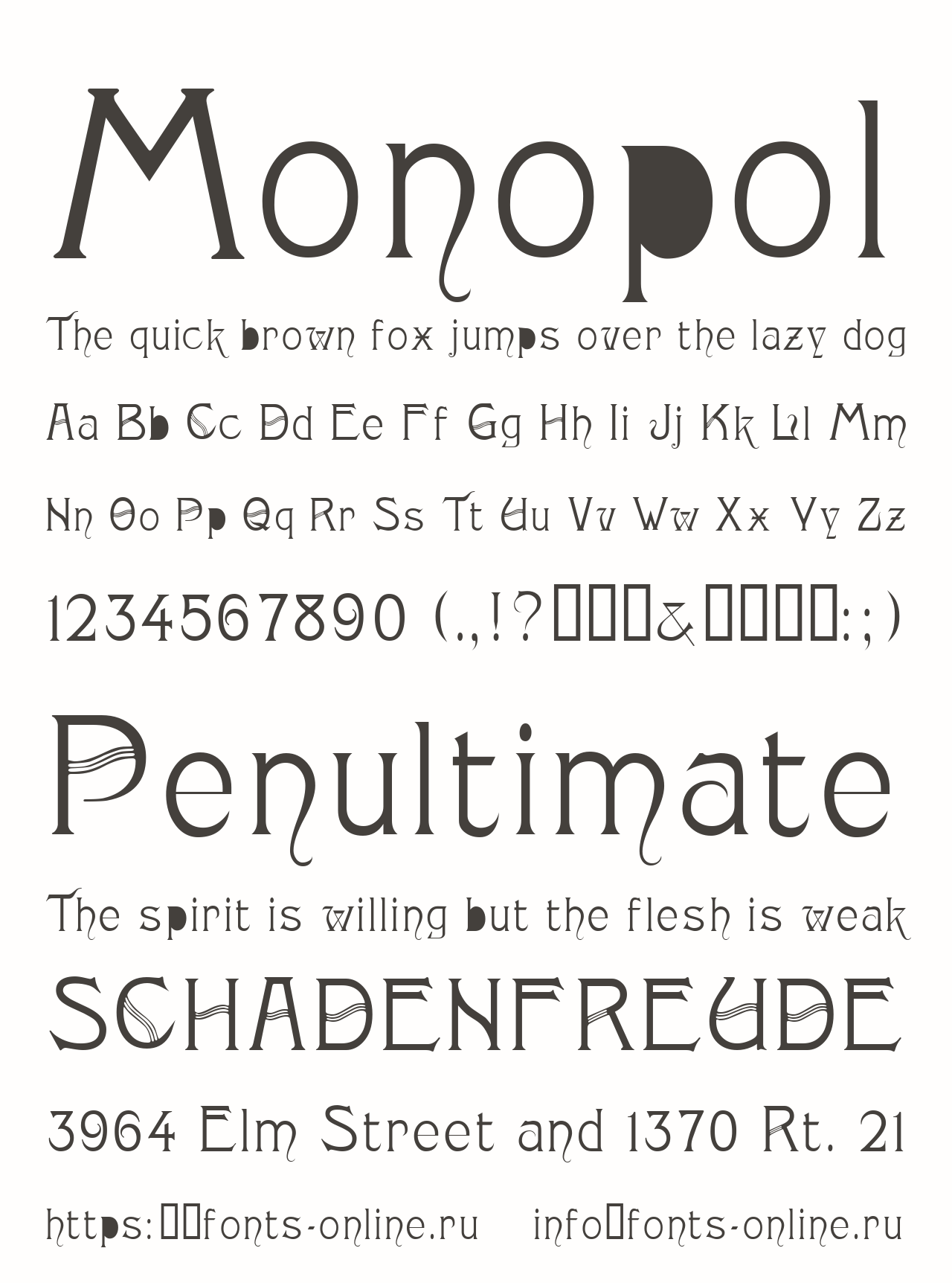Шрифт Monopol. Гарнитура содержит 1 файл и поддерживает 12 языков. Можно использовать в коммерческой и не коммерческой деятельности.
