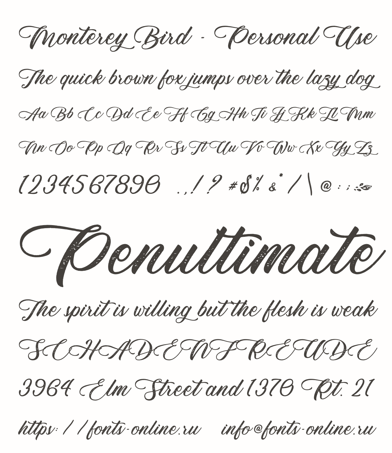 Шрифт Monterey Bird - Personal Use. Гарнитура содержит 1 файл и поддерживает 35 языков. Можно использовать в не коммерческой деятельности. Разработка Monterey Bird - Personal Use велась Typhoon Type� - Suthi Srisopha.