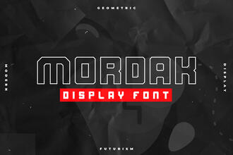 Шрифт Mordak. Гарнитура содержит 2 файла и поддерживает 12 языков. Разработка Mordak велась Epoknot Design.