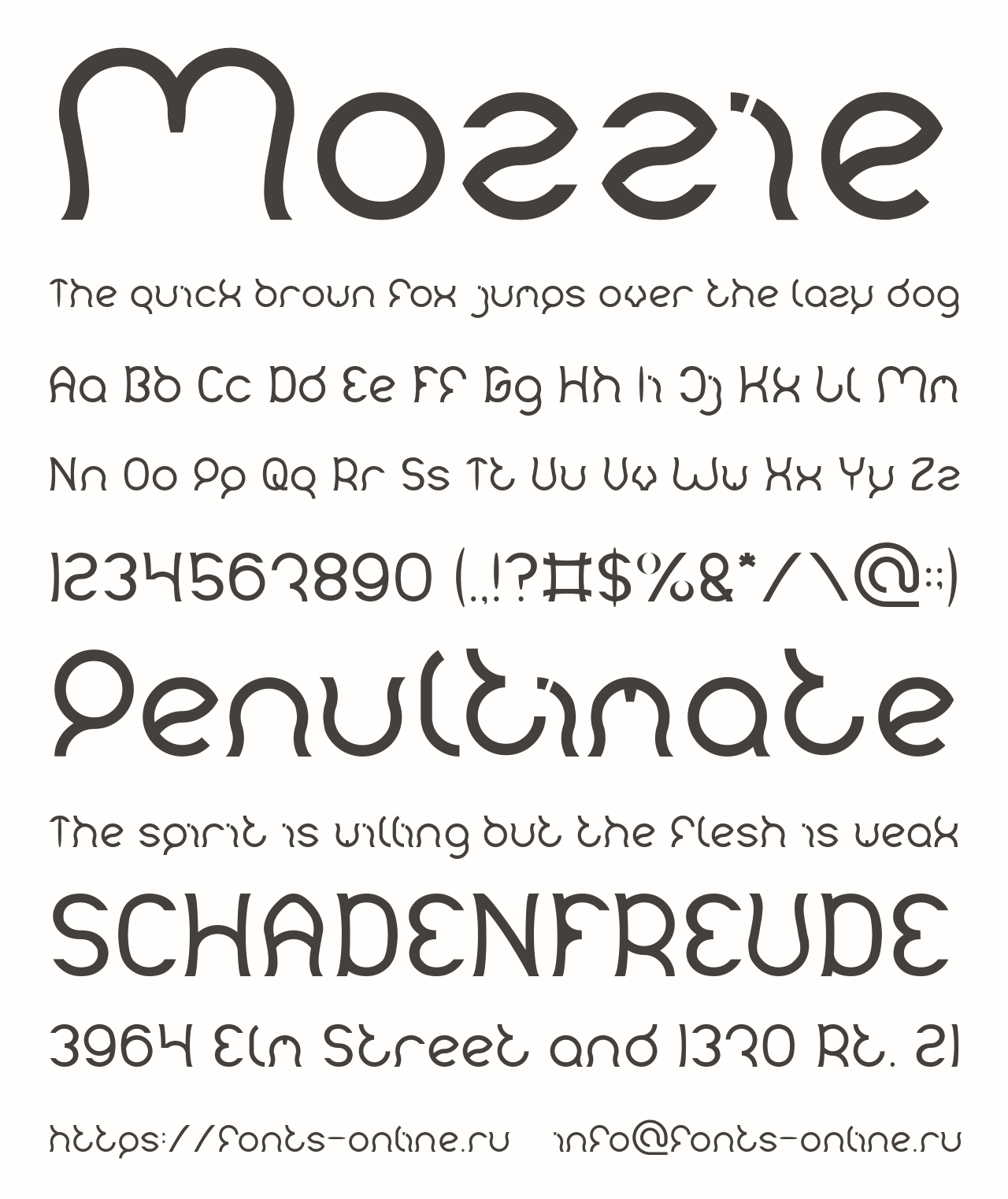 Шрифт Mozzie. Гарнитура содержит 8 файлов и поддерживает 37 языков. Можно использовать в не коммерческой деятельности.