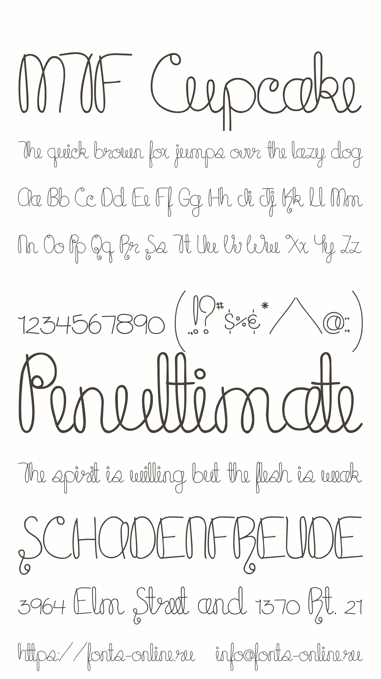 Шрифт MTF Cupcake. Гарнитура содержит 2 файла и поддерживает 37 языков. Можно использовать в не коммерческой деятельности. Разработка MTF Cupcake велась Miss Tiina Fonts - MTF.
