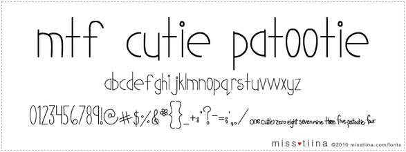 Шрифт MTF Cutie Patootie. Гарнитура содержит 1 файл и поддерживает 66 языков. Можно использовать в не коммерческой деятельности. Разработка MTF Cutie Patootie велась Miss Tiina Fonts - MTF.