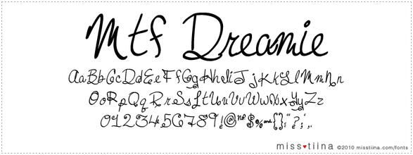 Шрифт MTF Dreamie. Гарнитура содержит 1 файл и поддерживает 28 языков. Можно использовать в не коммерческой деятельности. Разработка MTF Dreamie велась Miss Tiina Fonts - MTF.