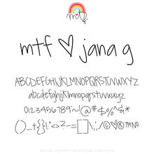 Шрифт MTF JanaG. Гарнитура содержит 2 файла и поддерживает 37 языков. Можно использовать в не коммерческой деятельности. Разработка MTF JanaG велась Miss Tiina Fonts - MTF.