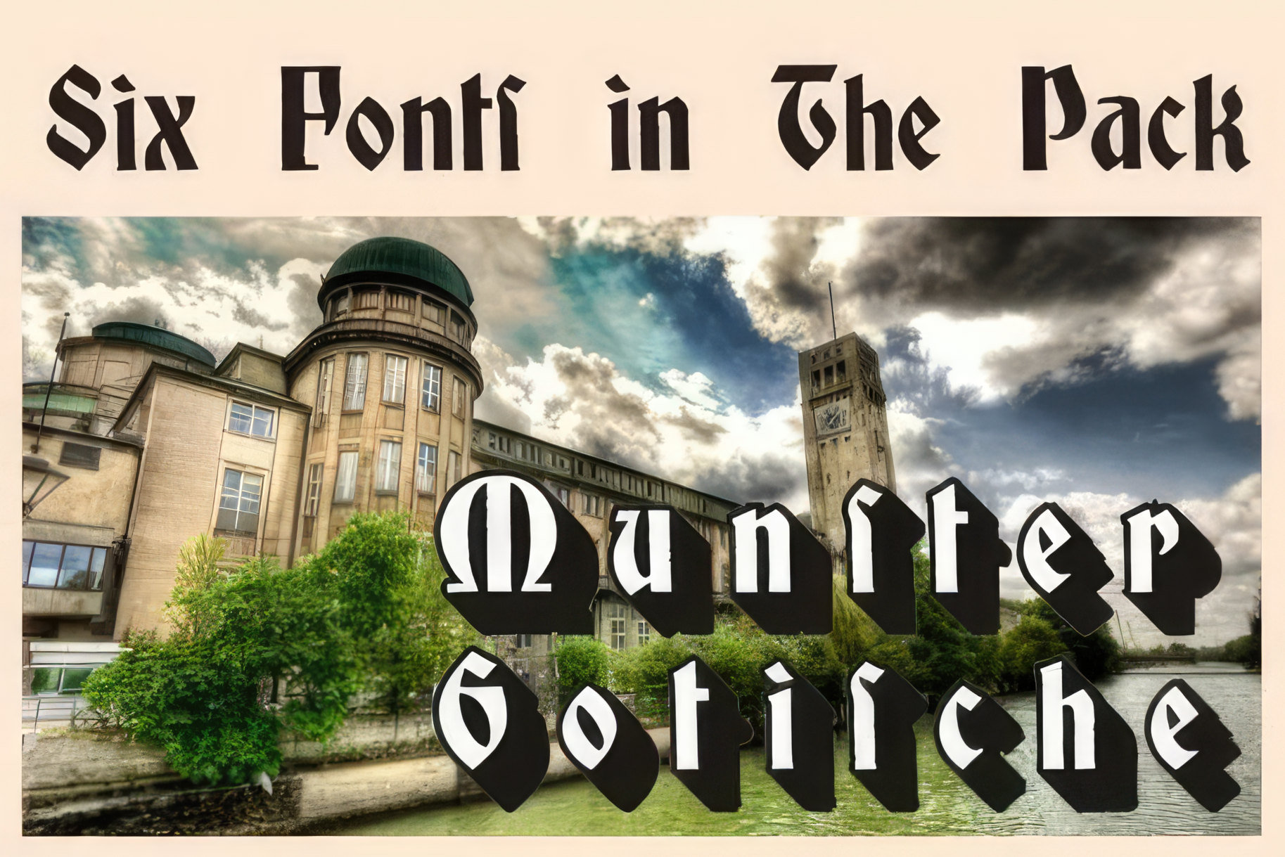 MüNsterGotische PinterestFacebookTwitter Скачать MüNsterGotische Тестировать MüNsterGotische Сообщить об ошибке Шрифт MüNsterGotische. Гарнитура содержит 6 файлов и поддерживает 12 языков. Изображения Copyright Copyright (c) 2009 by Paulo W, Intellecta Design. All rights reserved. Дополнительная информация Категории Исторические шрифты Готические шрифты Языки Английский Зулу Индонезийский Корнский Оромо Руанда Рунди Северный ндебеле Сомалийский Суахили Узбекский Шона
