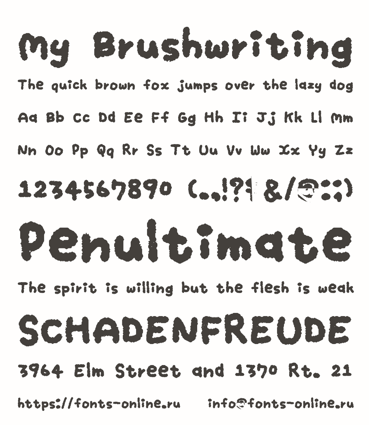 Шрифт My Brushwriting. Гарнитура содержит 1 файл и поддерживает 12 языков. Можно использовать в не коммерческой деятельности.