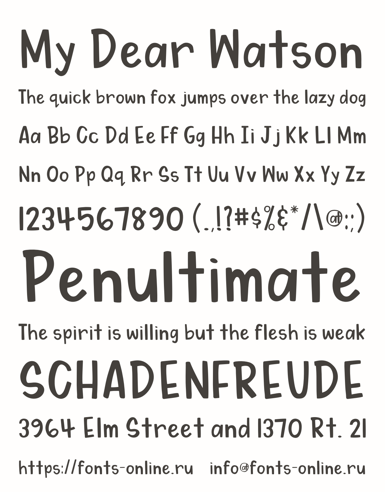Шрифт My Dear Watson. Гарнитура содержит 2 файла и поддерживает 39 языков. Можно использовать в не коммерческой деятельности.