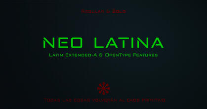Neo Latina is a classic typeface versalitas sans serif of square proportion and rectilinear character with the ends of rounded poles and a semi-stencil design that gives it a futuristic and sci-fi look.