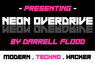 Шрифт Neon Overdrive. Гарнитура содержит 4 файла и поддерживает 12 языков. Разработка Neon Overdrive велась Darrell Flood.