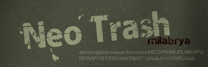Шрифт NeoTrash. Гарнитура содержит 1 файл и поддерживает 37 языков. Можно использовать в не коммерческой деятельности. Разработка NeoTrash велась Milabrya.