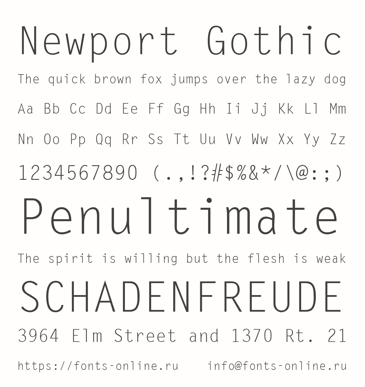 Шрифт Newport Gothic. Гарнитура содержит 2 файла и поддерживает 39 языков. Можно использовать в коммерческой и не коммерческой деятельности.
