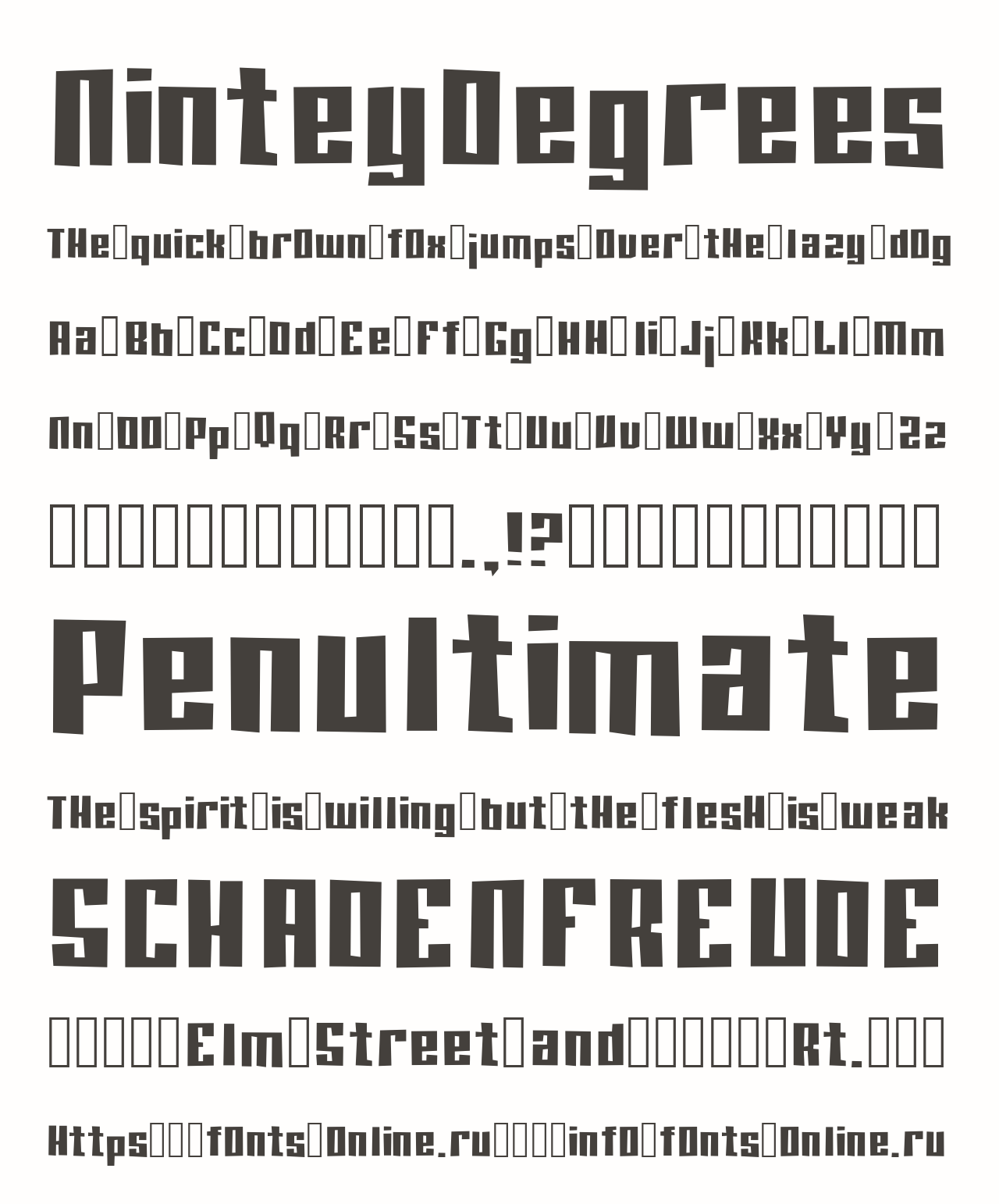 Шрифт NinteyDegrees. Гарнитура содержит 1 файл и поддерживает 12 языков. Можно использовать в коммерческой и не коммерческой деятельности.