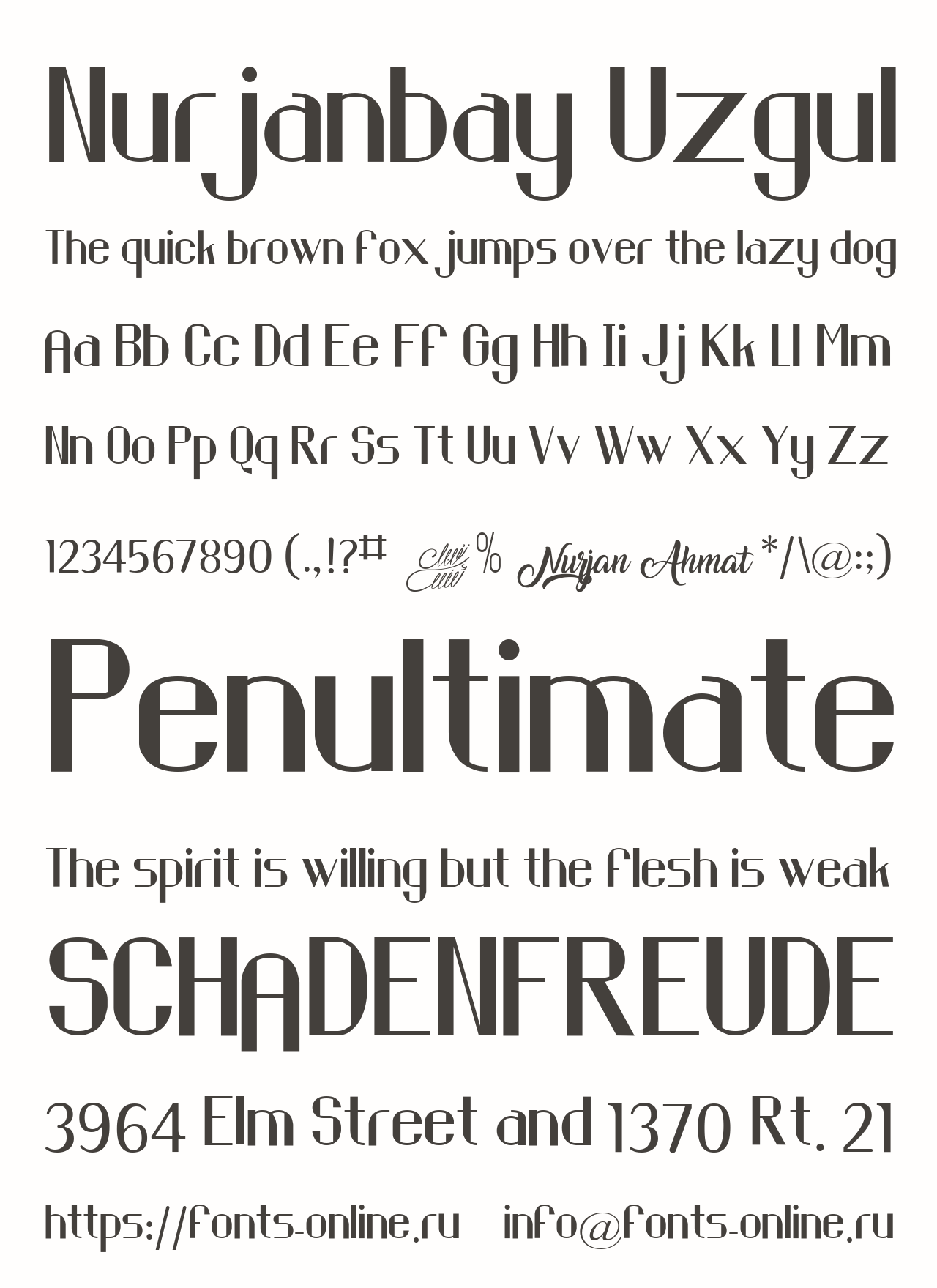 Шрифт Nurjanbay Uzgul. Гарнитура содержит 1 файл и поддерживает 12 языков. Лицензия SIL OFL 1.1. Можно использовать в коммерческой и не коммерческой деятельности.