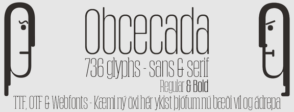 Obcecada es una fuente geometrica con serif, fina, muy condensada y redondeada. Free For Personal Use