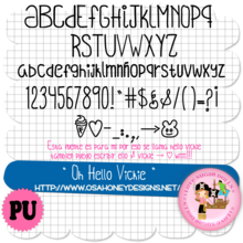 Шрифт Oh_Hello_Vickie. Гарнитура содержит 1 файл и поддерживает 12 языков. Можно использовать в не коммерческой деятельности. Разработка Oh_Hello_Vickie велась Vickie Martinez.