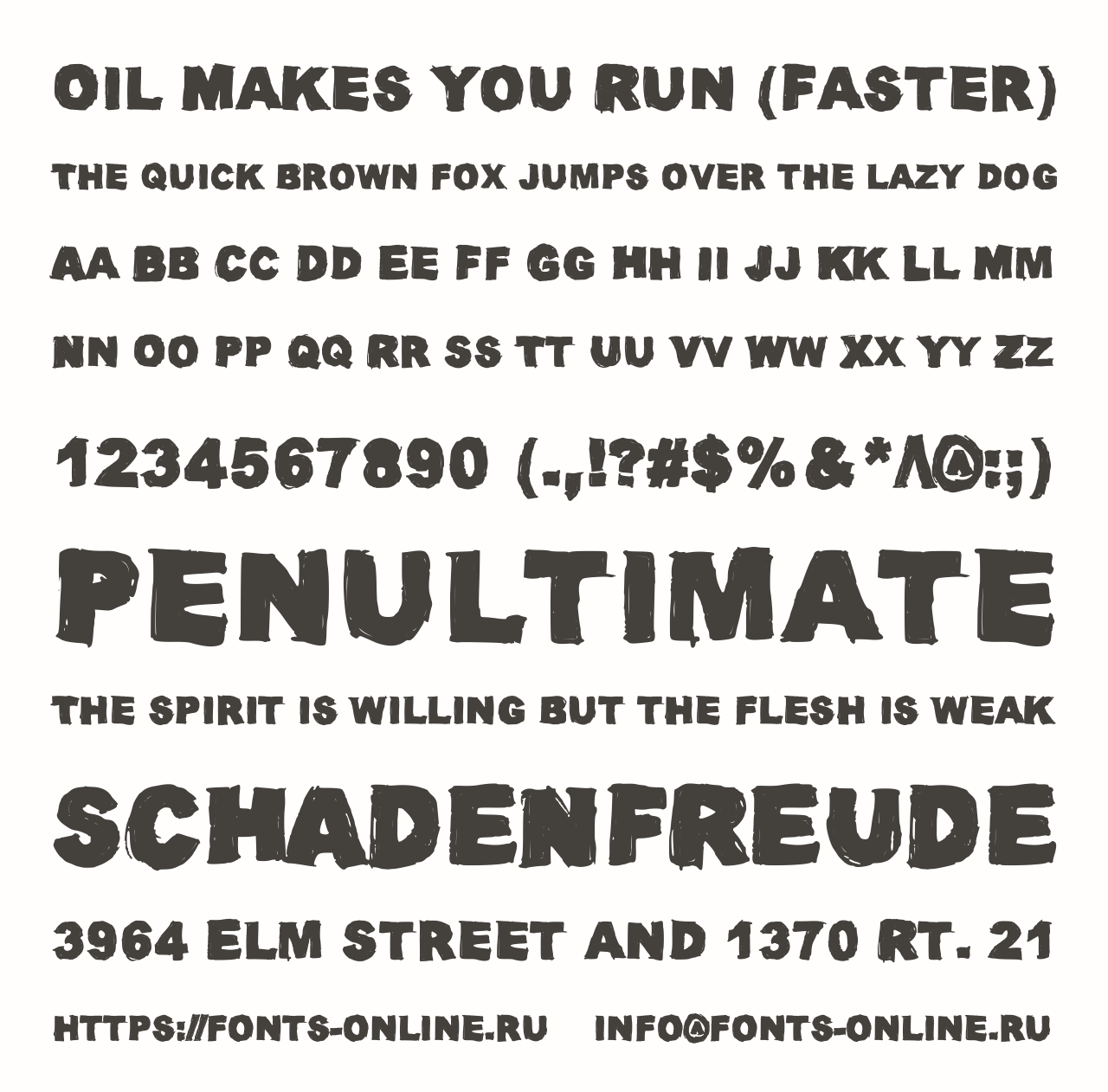 Шрифт Oil Makes You Run (Faster). Гарнитура содержит 1 файл и поддерживает 13 языков. Можно использовать в не коммерческой деятельности. Разработка Oil Makes You Run (Faster) велась Benjamin Wendl.