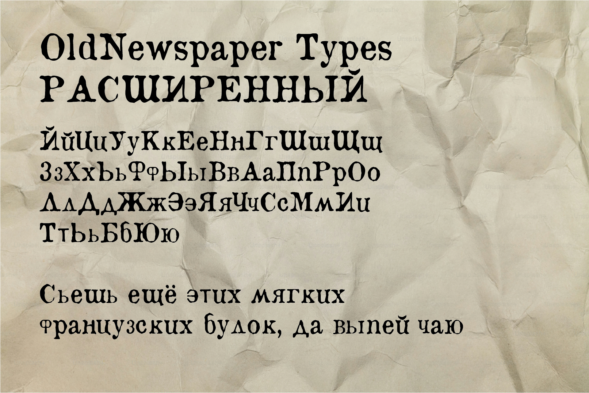 OldNewspaper Types Extended PinterestFacebookTwitter Скачать OldNewspaper Types Extended Тестировать OldNewspaper Types Extended Сообщить об ошибке Шрифт OldNewspaper Types Extended. Гарнитура содержит 1 файл и поддерживает 39 языков. Изображения Copyright (c) nbt1248 2025 Дополнительная информация Категории Машинописные шрифты Тематические шрифты Шрифты для заголовков Шрифты для текста Шрифты с засечками Языки Албанский Английский Африкаанс Баскский Болгарский Бретонский Букмол Галисийский Датский Зулу Индонезийский Ирландский Испанский Итальянский Каталанский Кечуанский Корнский Люксембургский Малагасийский Мэнский Немецкий Нидерландский Новонорвежский Оромо Португальский Романшский Руанда Рунди Русский Санго Северный ндебеле Сомалийский Суахили Узбекский Французский Чеченский Шведский Шона Шотландский