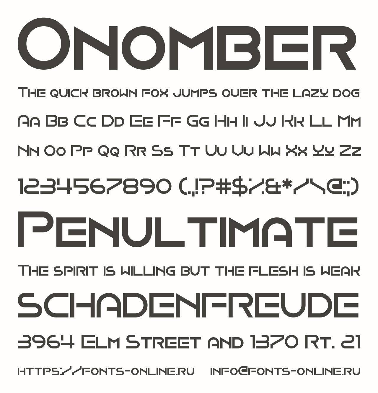 Шрифт Onomber. Гарнитура содержит 1 файл и поддерживает 12 языков. Можно использовать в не коммерческой деятельности. Разработка Onomber велась Chequered Ink.