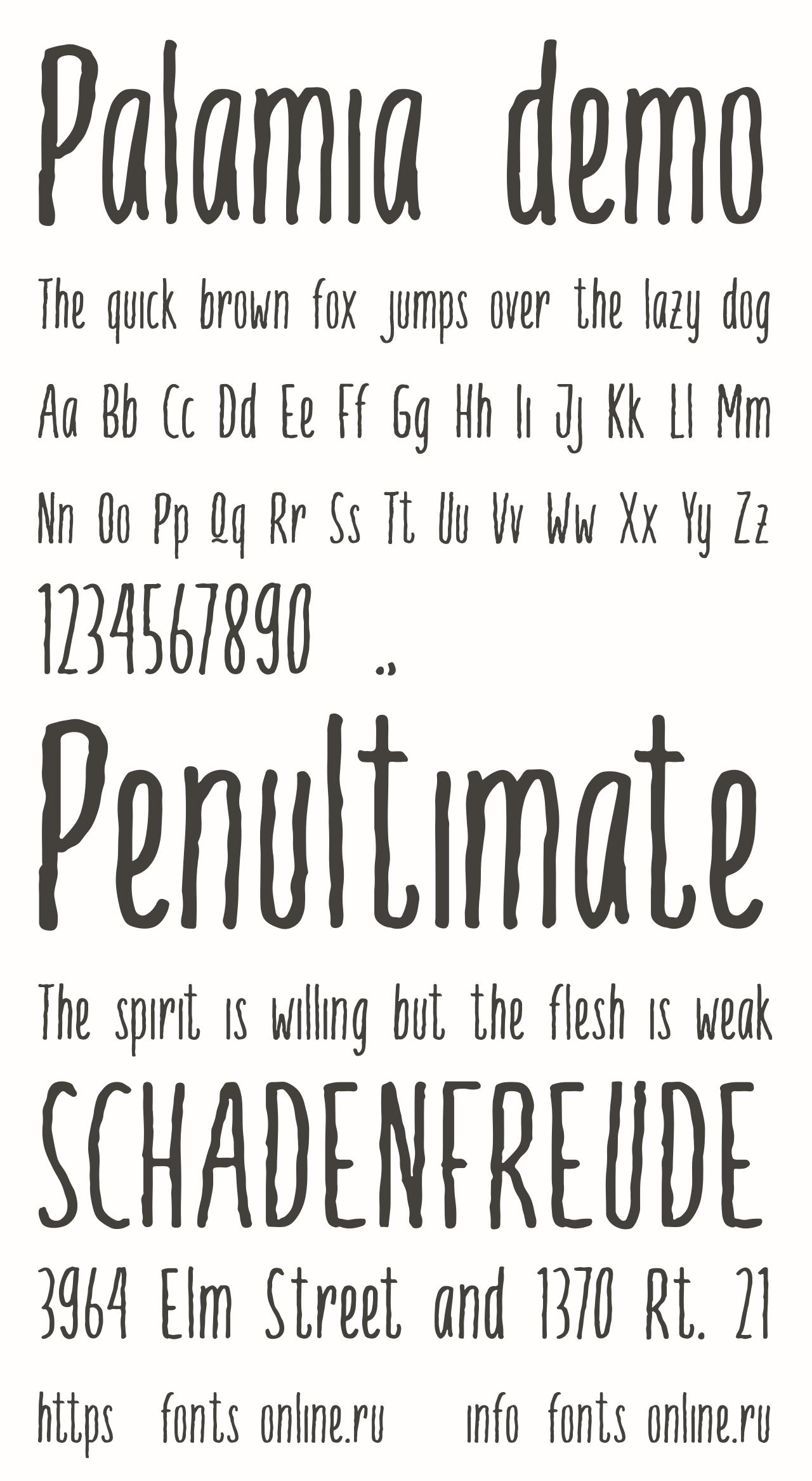 Шрифт Palamia demo. Гарнитура содержит 1 файл и поддерживает 38 языков. Можно использовать в не коммерческой деятельности. Разработка Palamia demo велась Typefar.