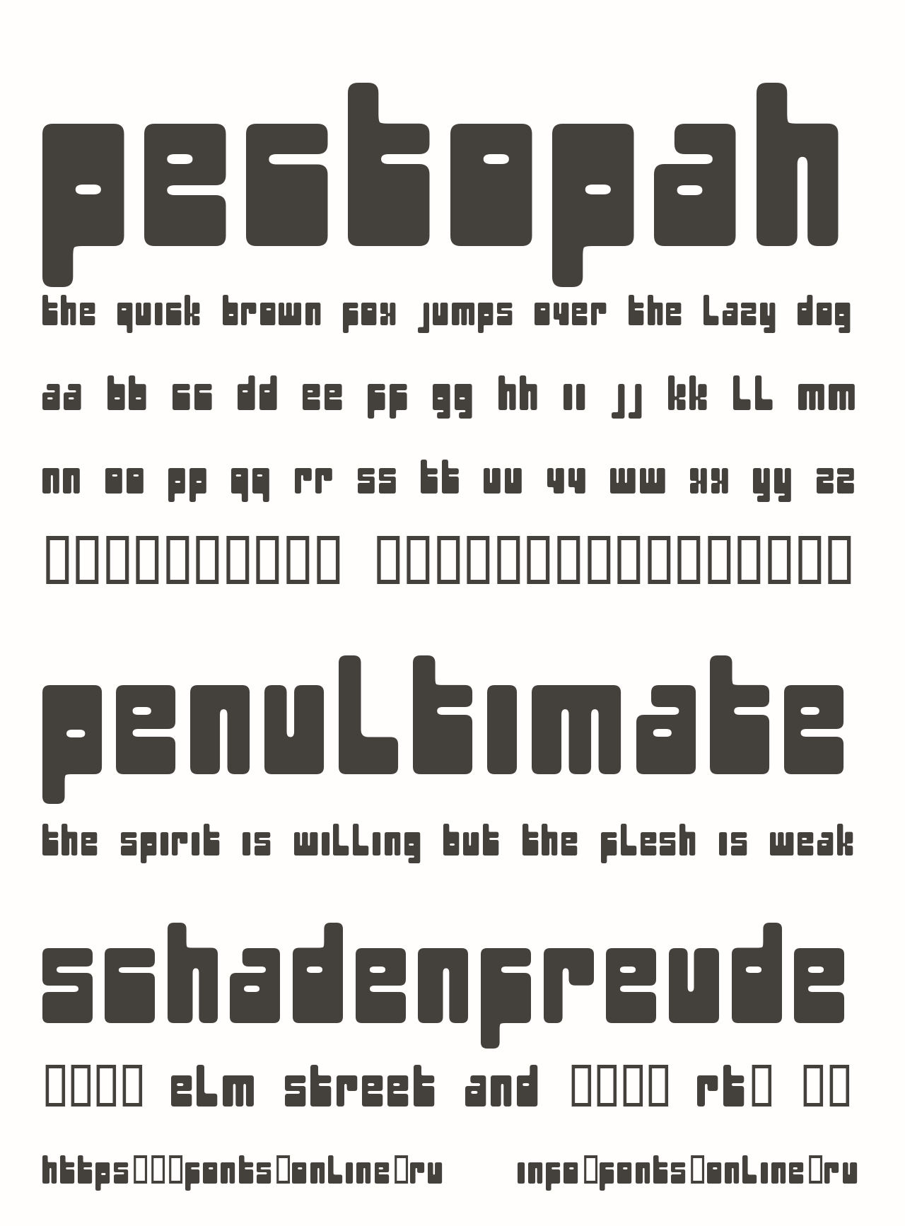 Шрифт pectopah. Гарнитура содержит 1 файл и поддерживает 12 языков. Можно использовать в коммерческой и не коммерческой деятельности.