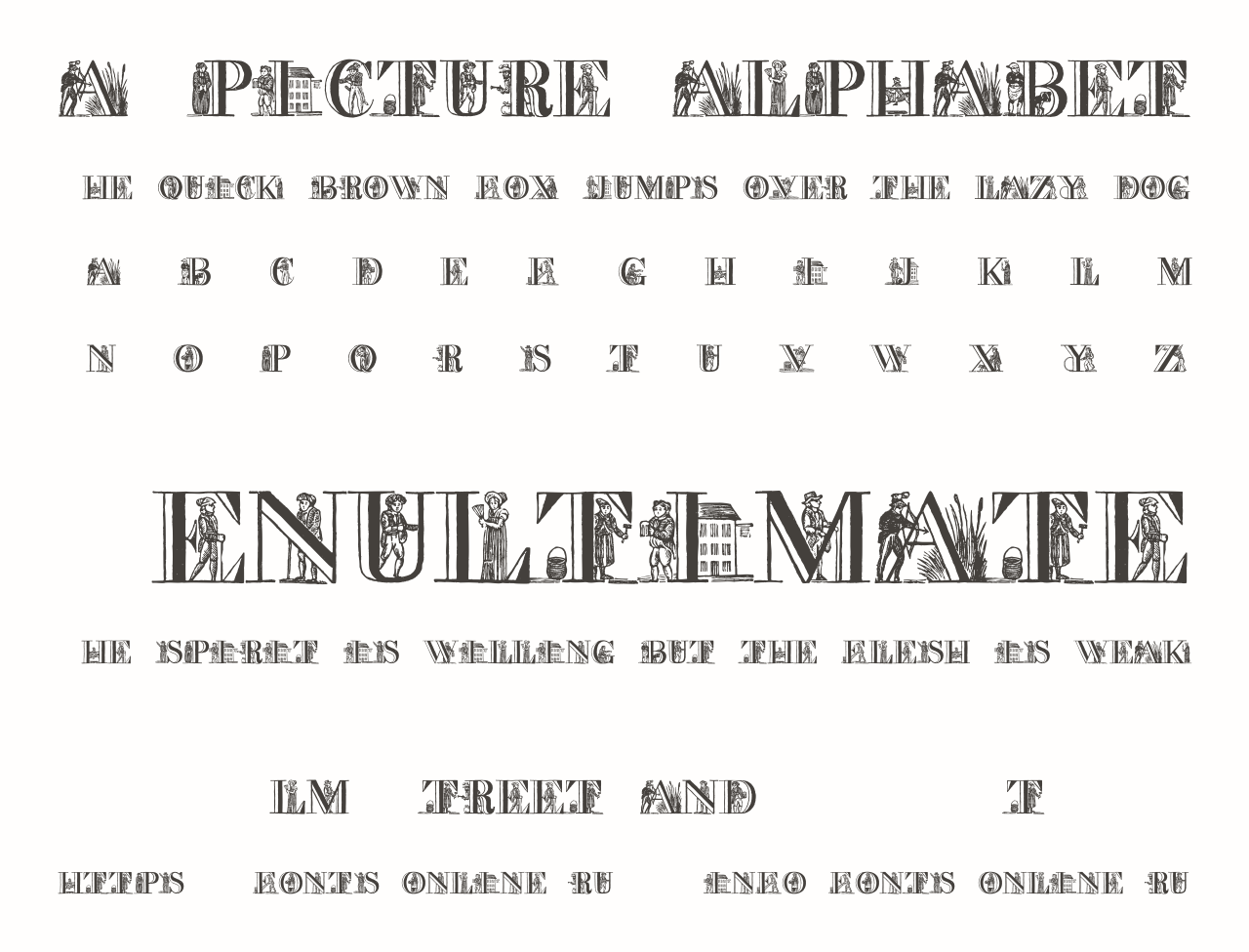 a picture alphabet, circa 1834, digitized from public domain woodcuts by steven j. lundeen, emerald city fontwerks, seattle, wa (ecf@speakasy.org)Лицензионные условия
