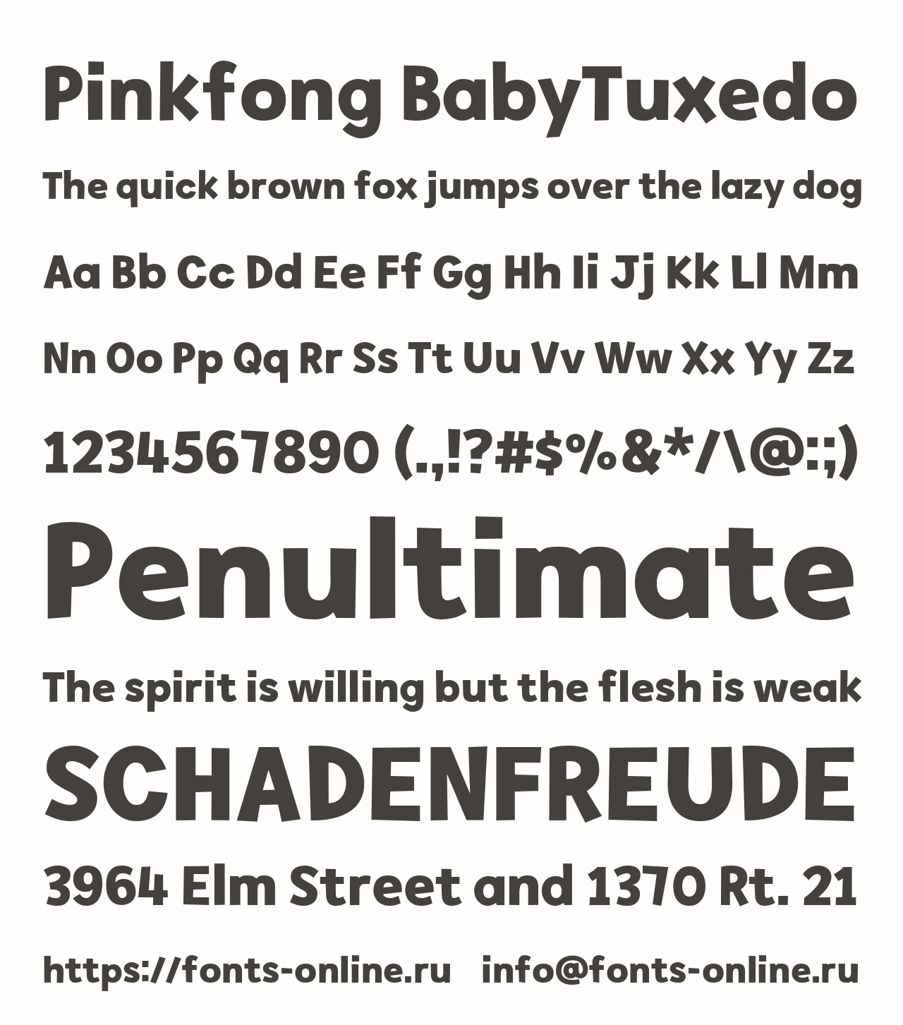 Шрифт Pinkfong BabyTuxedo. Гарнитура содержит 1 файл и поддерживает 12 языков. Можно использовать в не коммерческой деятельности.