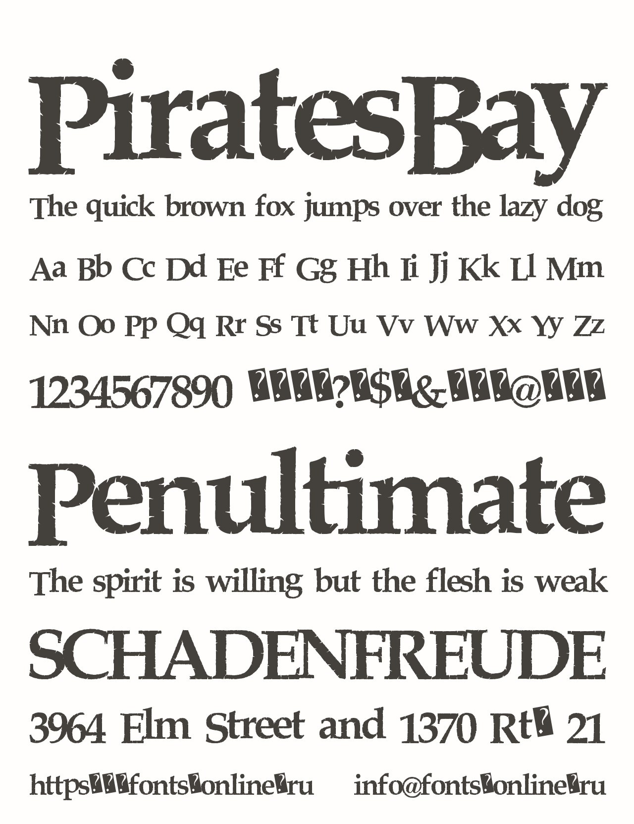 Шрифт PiratesBay. Гарнитура содержит 1 файл и поддерживает 17 языков. Разработка PiratesBay велась Xerographer Fonts.