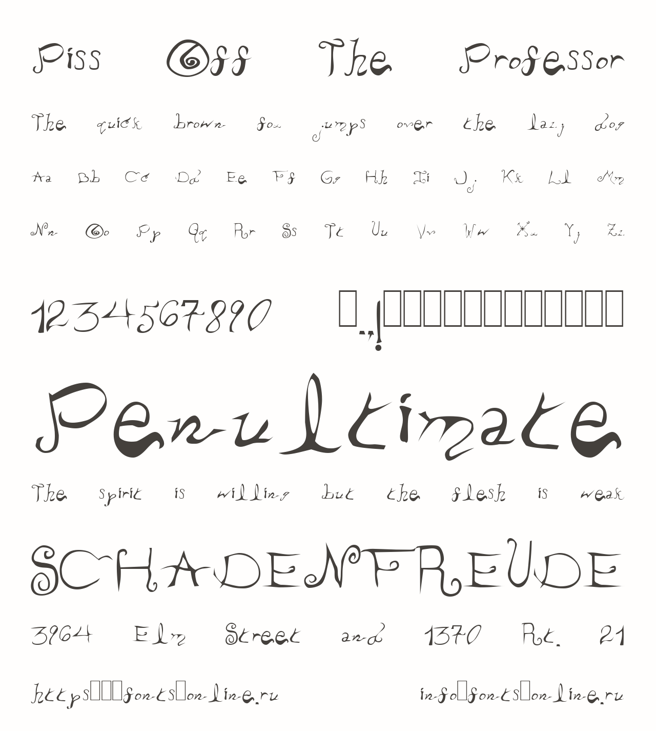 Шрифт Piss Off The Professor. Гарнитура содержит 1 файл и поддерживает 12 языков. Можно использовать в коммерческой и не коммерческой деятельности.