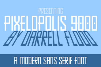 Шрифт Pixelopolis 9000. Гарнитура содержит 2 файла и поддерживает 12 языков. Разработка Pixelopolis 9000 велась Darrell Flood.