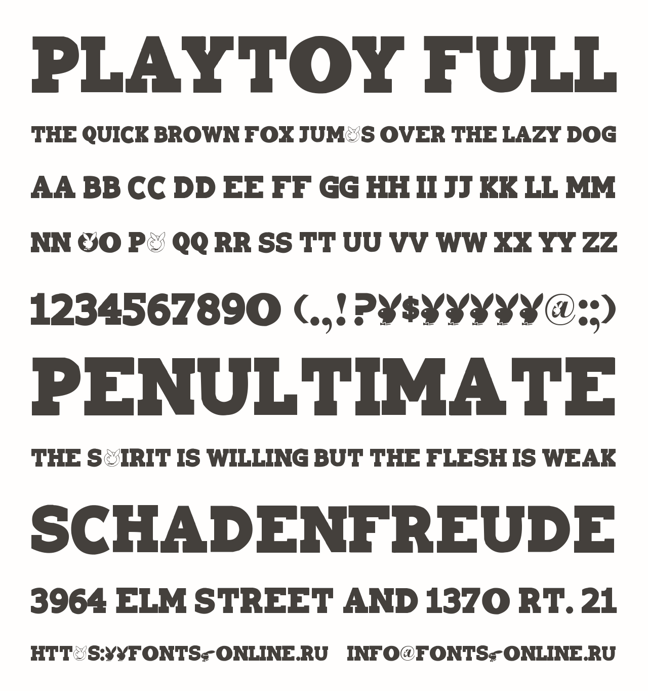 Playtoy Full PinterestFacebookTwitter Скачать Playtoy Full Тестировать Playtoy Full Сообщить об ошибке Шрифт Playtoy Full. Гарнитура содержит 1 файл и поддерживает 12 языков. Изображения Copyright Playtoy © Dennis Ludlow.2000. All Rights Reserved Дополнительная информация Категории Тематические шрифты Брендовые шрифты Шрифты для заголовков Шрифты с засечками Языки Английский Зулу Индонезийский Корнский Оромо Руанда Рунди Северный ндебеле Сомалийский Суахили Узбекский Шона