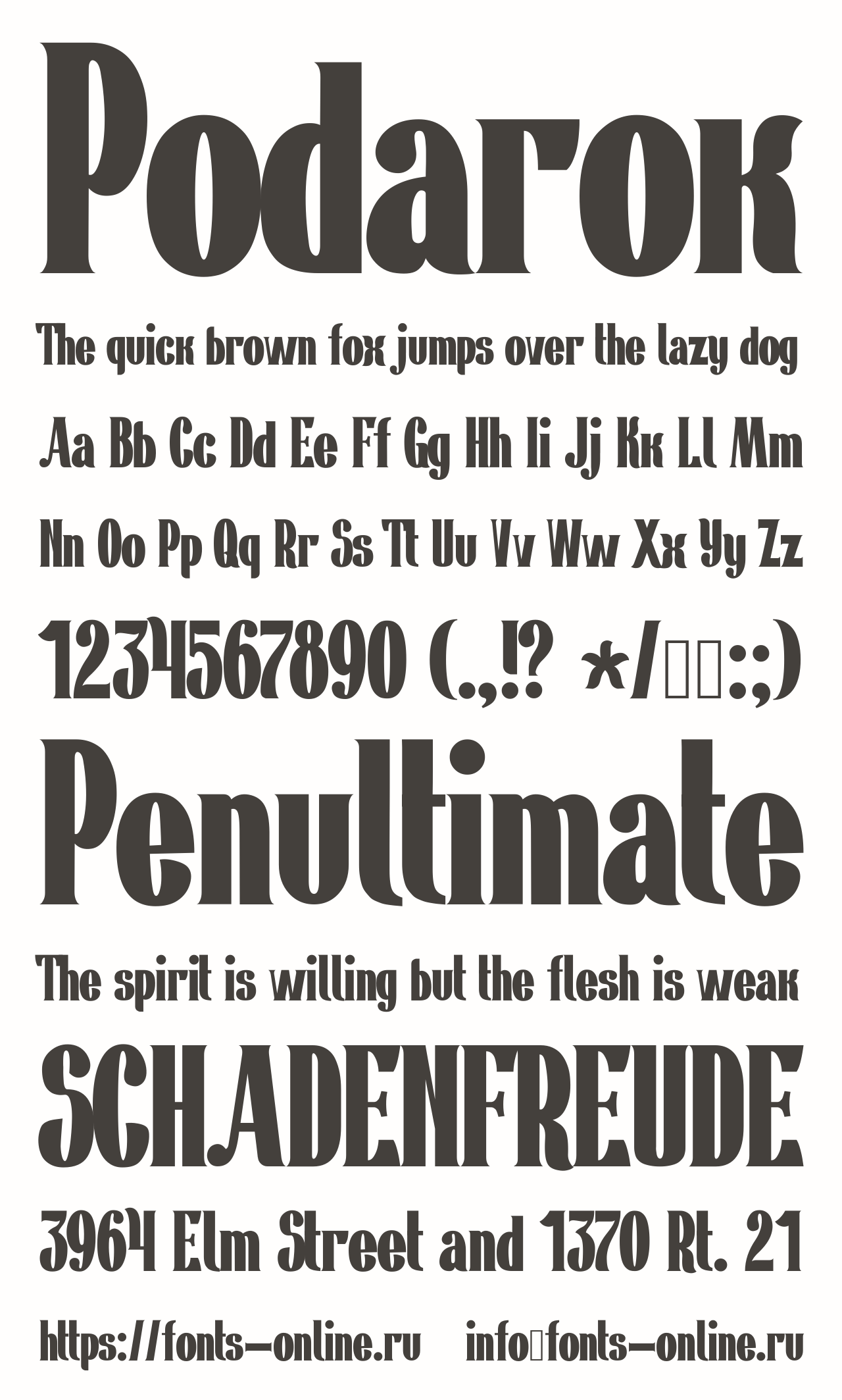 Podarok PinterestFacebookTwitter Скачать Podarok Тестировать Podarok Сообщить об ошибке Шрифт Podarok. Гарнитура содержит 1 файл и поддерживает 15 языков. Copyright Copyright (c) 2023, TK Дополнительная информация Категории Дизайнерские шрифты Декоративные шрифты Красивые шрифты Ретро шрифты Исторические шрифты Шрифты без засечек Шрифты для заголовков Языки Английский Болгарский Зулу Индонезийский Корнский Оромо Руанда Рунди Русский Северный ндебеле Сомалийский Суахили Узбекский Чеченский Шона