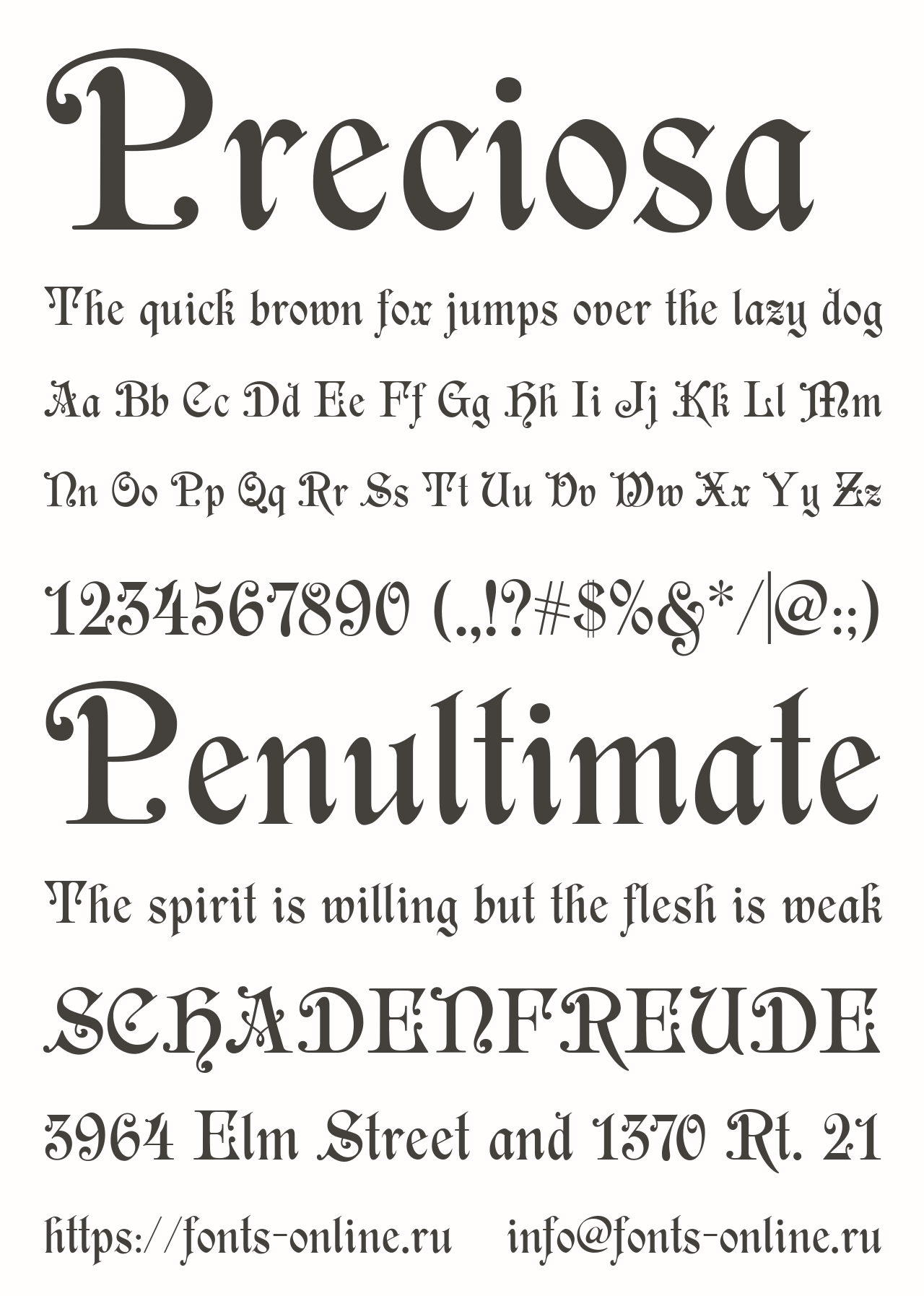 Шрифт Preciosa . Гарнитура содержит 2 файла и поддерживает 70 языков. Можно использовать в не коммерческой деятельности. Разработка Preciosa велась Alexandra Gophmann.