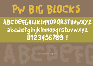 Шрифт PWBigblocks. Гарнитура содержит 1 файл и поддерживает 12 языков. Разработка PWBigblocks велась Peax Webdesign.