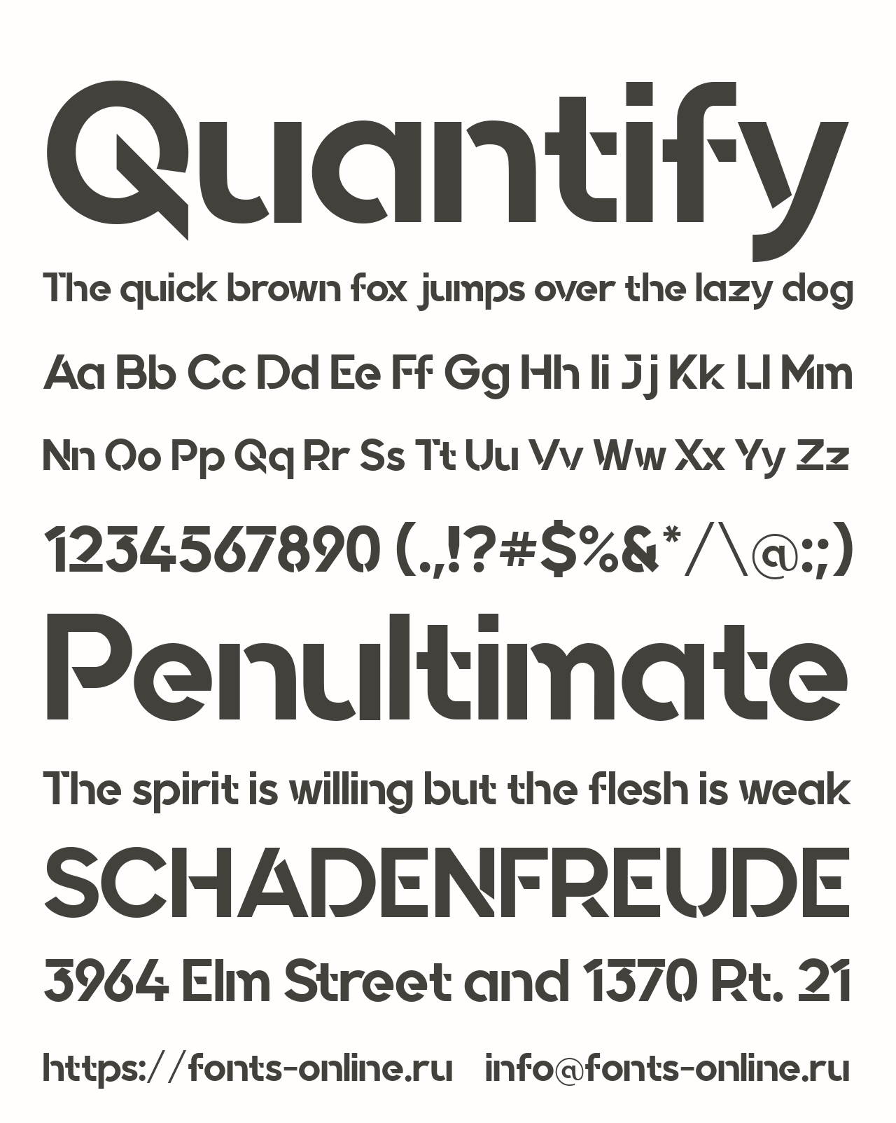 Шрифт Quantify. Гарнитура содержит 1 файл и поддерживает 24 языка. Можно использовать в не коммерческой деятельности. Разработка Quantify велась Sentype.