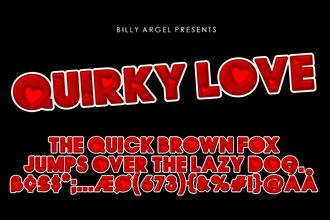Шрифт QUIRKY. Гарнитура содержит 4 файла и поддерживает 54 языка. Можно использовать в не коммерческой деятельности. Разработка QUIRKY велась Billy Argel.