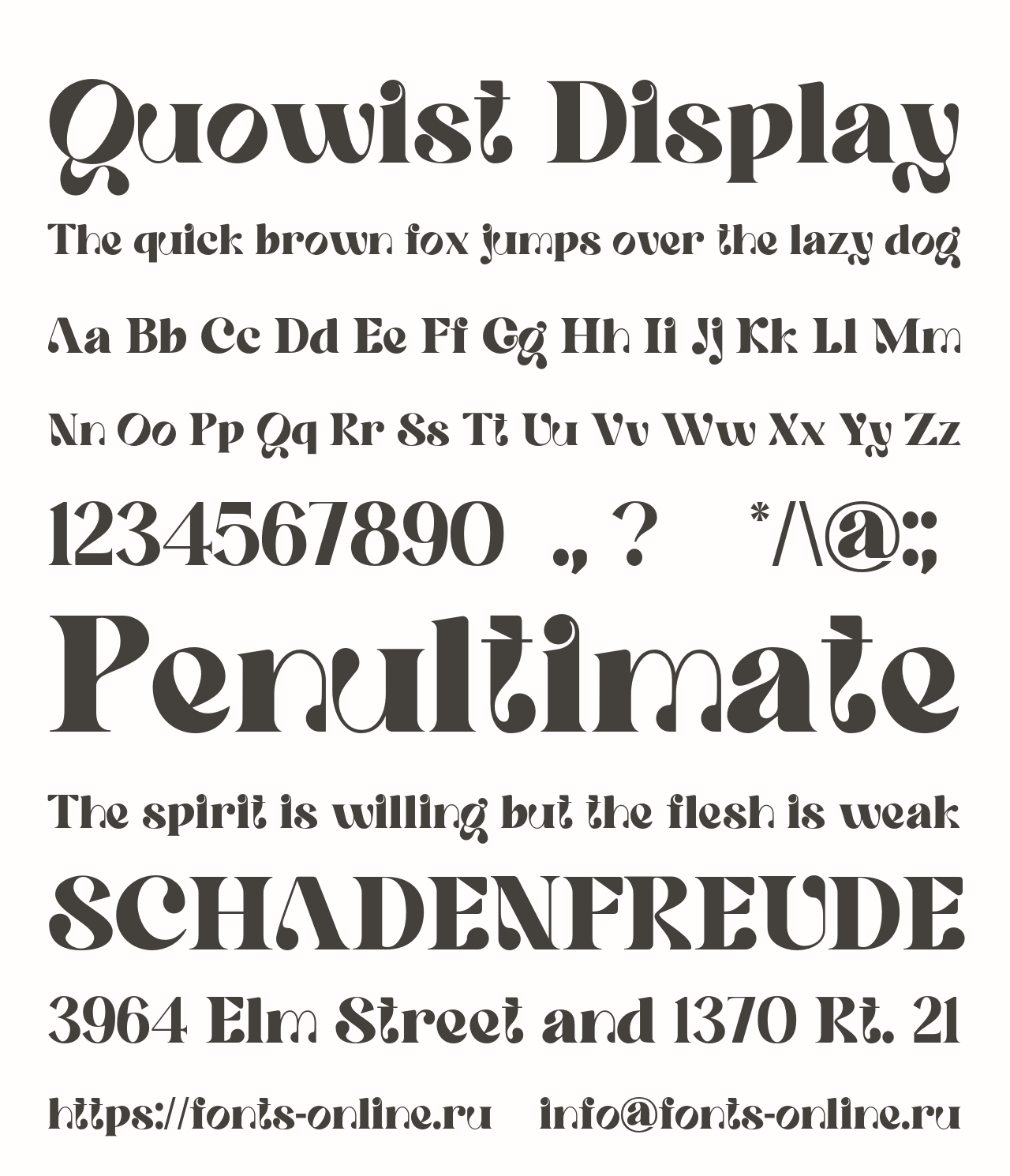 Шрифт Quowist Display. Гарнитура содержит 1 файл и поддерживает 12 языков. Можно использовать в не коммерческой деятельности. Разработка Quowist Display велась Afkari Studio.