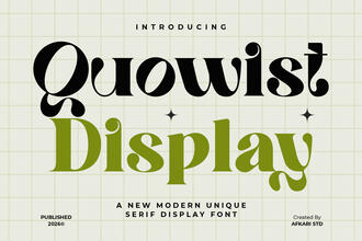 Quowist Display is a modern unique serif display font designed to create strong visual impact with refined elegance. Featuring high-contrast strokes, sharp serif details, and contemporary proportions, this serif typeface brings a luxurious and artistic feel to any design. It is carefully crafted to help designers build premium branding and sophisticated typography compositions.