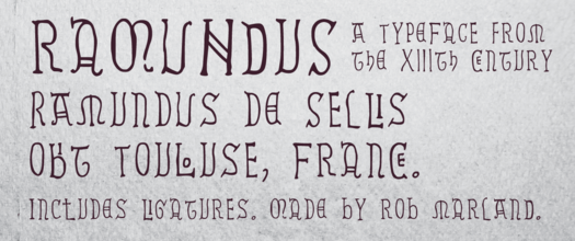 Шрифт Ramundus. Гарнитура содержит 2 файла и поддерживает 12 языков. Можно использовать в коммерческой и не коммерческой деятельности. Разработка Ramundus велась Rob Marland.