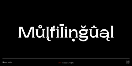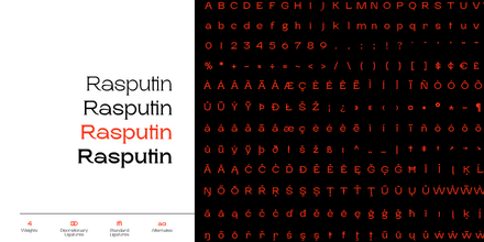 Шрифт Rasputin. Гарнитура содержит 1 файл и поддерживает 55 языков. Можно использовать в не коммерческой деятельности. Разработка Rasputin велась Jehoo Creative.