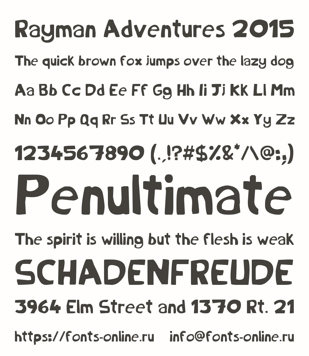 Rayman Adventures 2015 PinterestFacebookTwitter Скачать Rayman Adventures 2015 Тестировать Rayman Adventures 2015 Сообщить об ошибке Шрифт Rayman Adventures 2015. Гарнитура содержит 2 файла и поддерживает 46 языков. Copyright Typeface © Ubisoft. 2009-2015. All Rights Reserved Дополнительная информация Категории Брендовые шрифты Тематические шрифты Комические шрифты Шрифты из игр Языки Албанский Английский Африкаанс Баскский Болгарский Бретонский Букмол Венгерский Волапюк Галисийский Датский Зулу Индонезийский Ирландский Испанский Итальянский Каталанский Кечуанский Корнский Люксембургский Малагасийский Мэнский Немецкий Нидерландский Новонорвежский Оромо Польский Португальский Романшский Руанда Рунди Русский Санго Северный ндебеле Словенский Сомалийский Суахили Турецкий Узбекский Финский Чеченский Чешский Шведский Шона Шотландский Эстонский