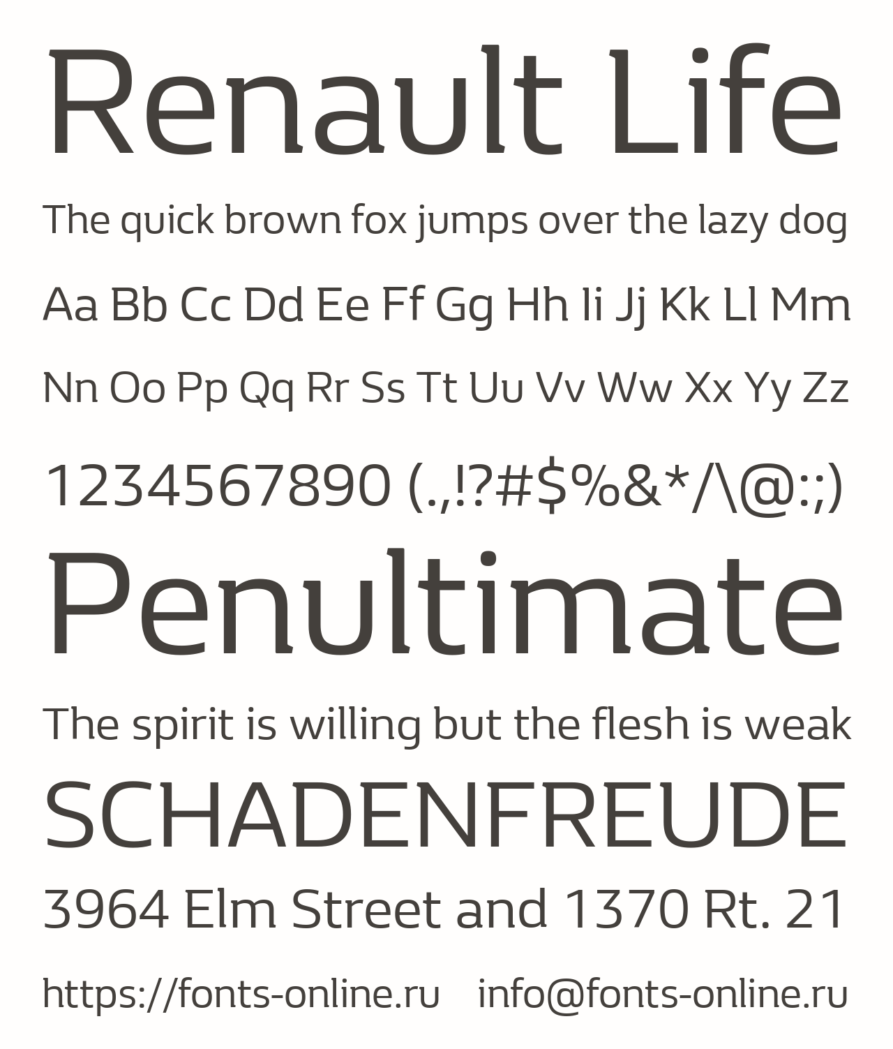 Renault Life PinterestFacebookTwitter Скачать Renault Life Тестировать Renault Life Сообщить об ошибке Шрифт Renault Life. Гарнитура содержит 6 файлов и поддерживает 66 языков. Изображения Copyright Copyright (c) 2015 by Fontsmith Ltd. All rights reserved. Дополнительная информация Категории Брендовые шрифты Тематические шрифты Шрифты без засечек Шрифты для заголовков Шрифты для текста Языки Албанский Английский Африкаанс Баскский Белорусский Болгарский Боснийский Бретонский Букмол Валлийский Венгерский Волапюк Галисийский Гренландский Датский Западнофризский Зулу Индонезийский Ирландский Исландский Испанский Итальянский Каталанский Кечуанский Кикуйю Корнский Латышский Литовский Луганда Люксембургский Македонский Малагасийский Мальтийский Мэнский Немецкий Нидерландский Новонорвежский Оромо Польский Португальский Романшский Руанда Румынский Рунди Русский Санго Северносаамский Северный ндебеле Сербский Словацкий Словенский Сомалийский Суахили Турецкий Узбекский Фарерский Финский Французский Хорватский Чеченский Чешский Шведский Шона Шотландский Эсперанто Эстонский
