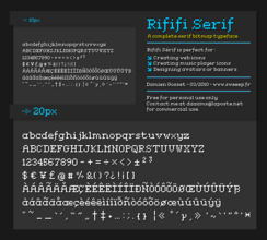 Шрифт Rififi Serif. Гарнитура содержит 1 файл и поддерживает 37 языков. Можно использовать в не коммерческой деятельности. Разработка Rififi Serif велась Damien Gosset.