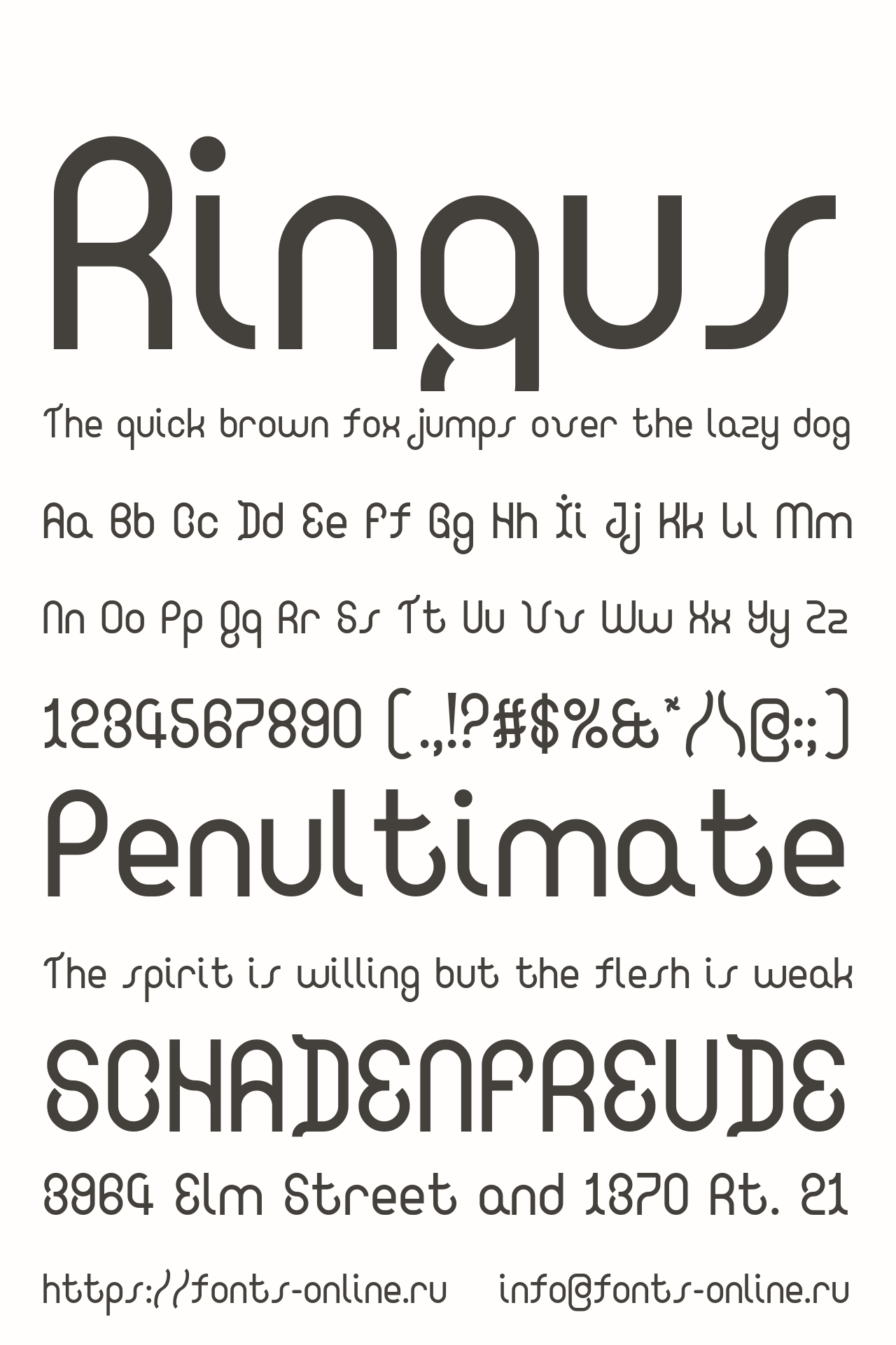 Шрифт Ringus. Гарнитура содержит 2 файла и поддерживает 61 язык. Лицензия SIL OFL 1.1. Можно использовать в коммерческой и не коммерческой деятельности. Разработка Ringus велась GGBotNet.