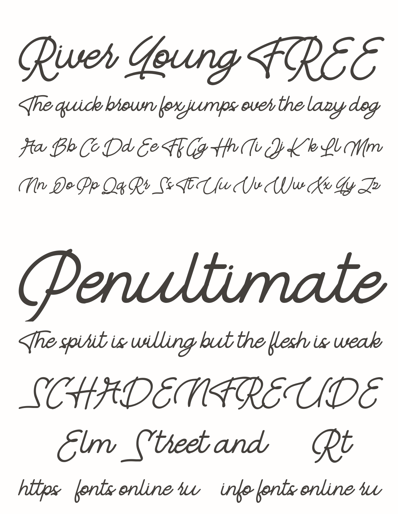 Шрифт River Young FREE. Гарнитура содержит 2 файла и поддерживает 12 языков. Можно использовать в не коммерческой деятельности. Разработка River Young FREE велась Vunira Design.