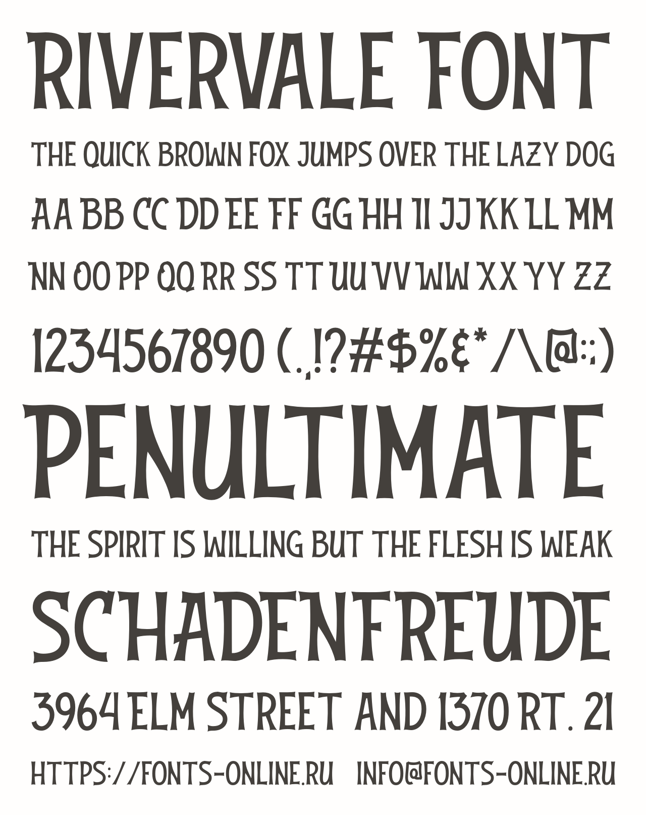 Шрифт Rivervale Font. Гарнитура содержит 1 файл и поддерживает 12 языков. Разработка Rivervale Font велась Letterhend Studio.